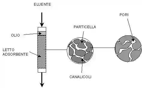 La diferencia sustancial entre la cromatografía tradicional y la supercrítica es que, mientras en el primer tipo el eluyente es un gas o un disolvente líquido, en el segundo tipo la fase móvil es un fluido supercrítico. Esta figura de la derecha muestra con un nivel de detalle creciente, un sistema cromatográfico. La mezcla a separar se inyecta en la columna y se absorbe en la primera fase de la fase estacionaria.