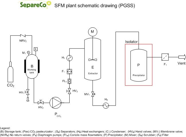 El proceso PGSS es bastante similar al proceso RESS con una diferencia importante: en el proceso PGSS, los polímeros primero se derriten o suspenden en un solvente a una temperatura dada en una autoclave y luego se solubilizan SCF-CO2 en el líquido o fundido anterior. sustancia(s), lo que lleva a una solución o suspensión saturada de gas que se despresuriza aún más a través de una boquilla con la formación de gotas o partículas sólidas.