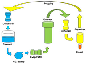 Expansión rápida de solución supercrítica RESS (Expansión rápida de solución supercrítica) se utiliza generalmente para producir partículas finas para la industria alimentaria, cosmética y farmacéutica.